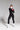 - Front and back contrast stripes made from trim fabric sculpt the figure and visually elongate the silhouette.