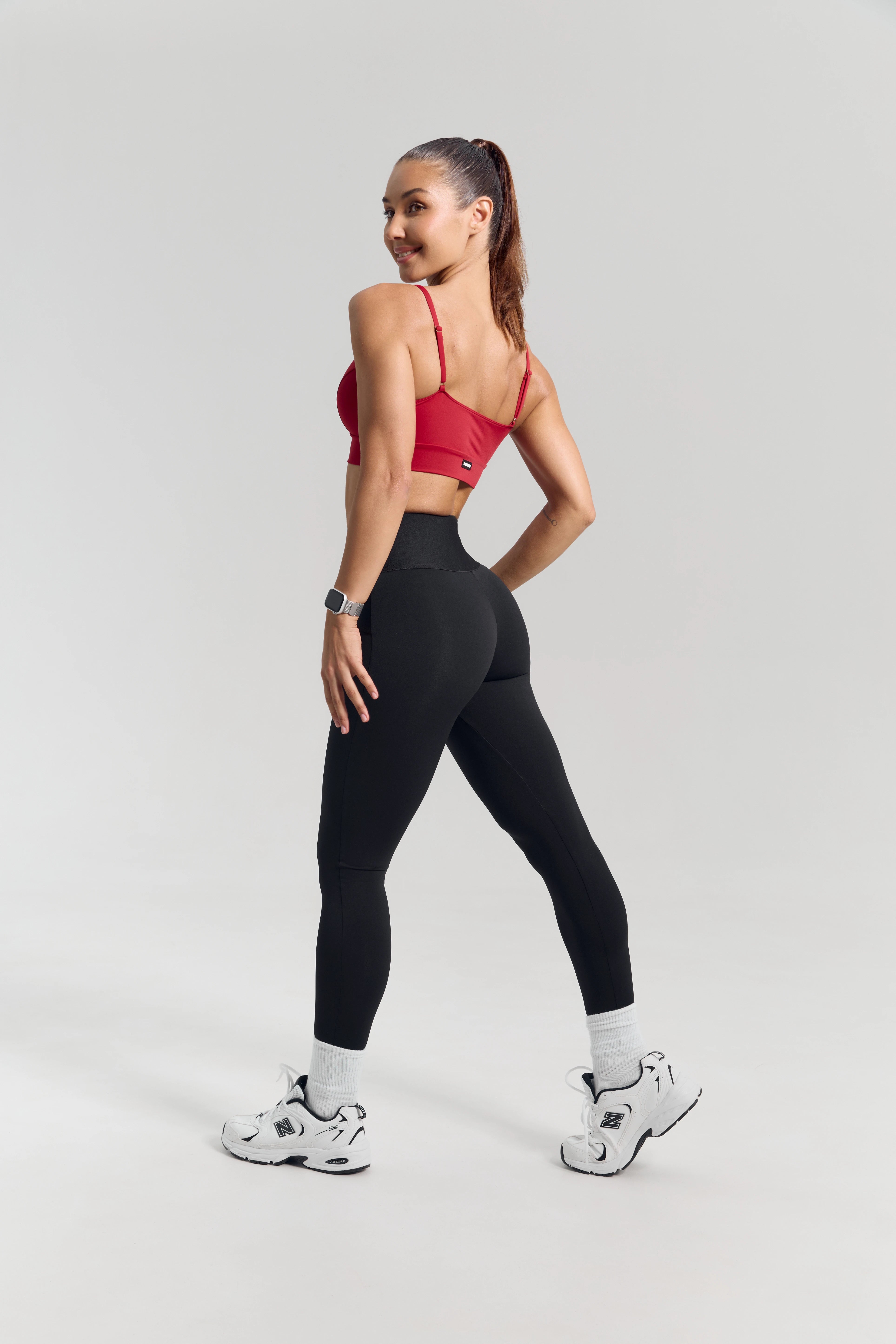 – Close, body-hugging fit enhances the glutes without restricting movement.