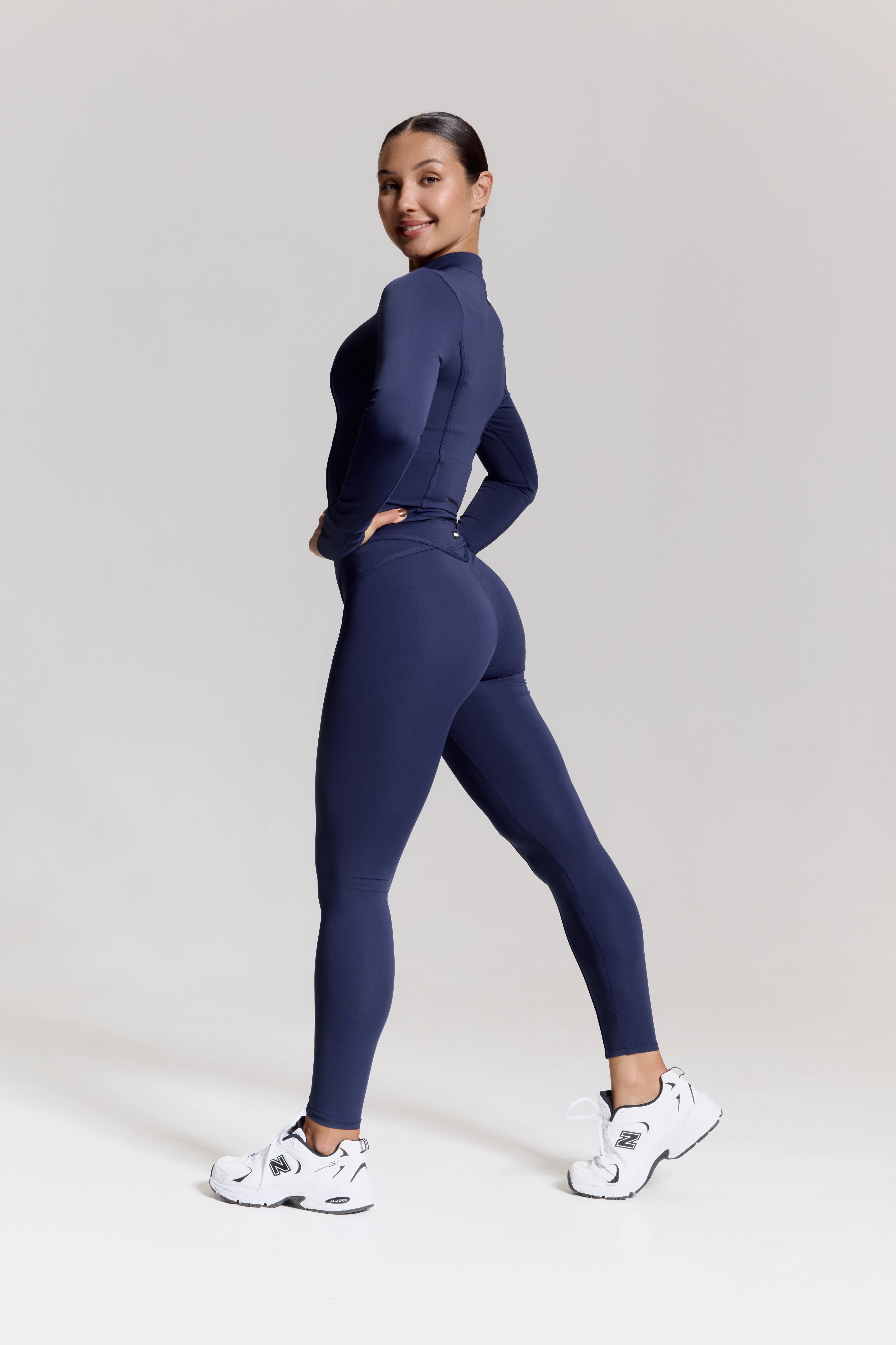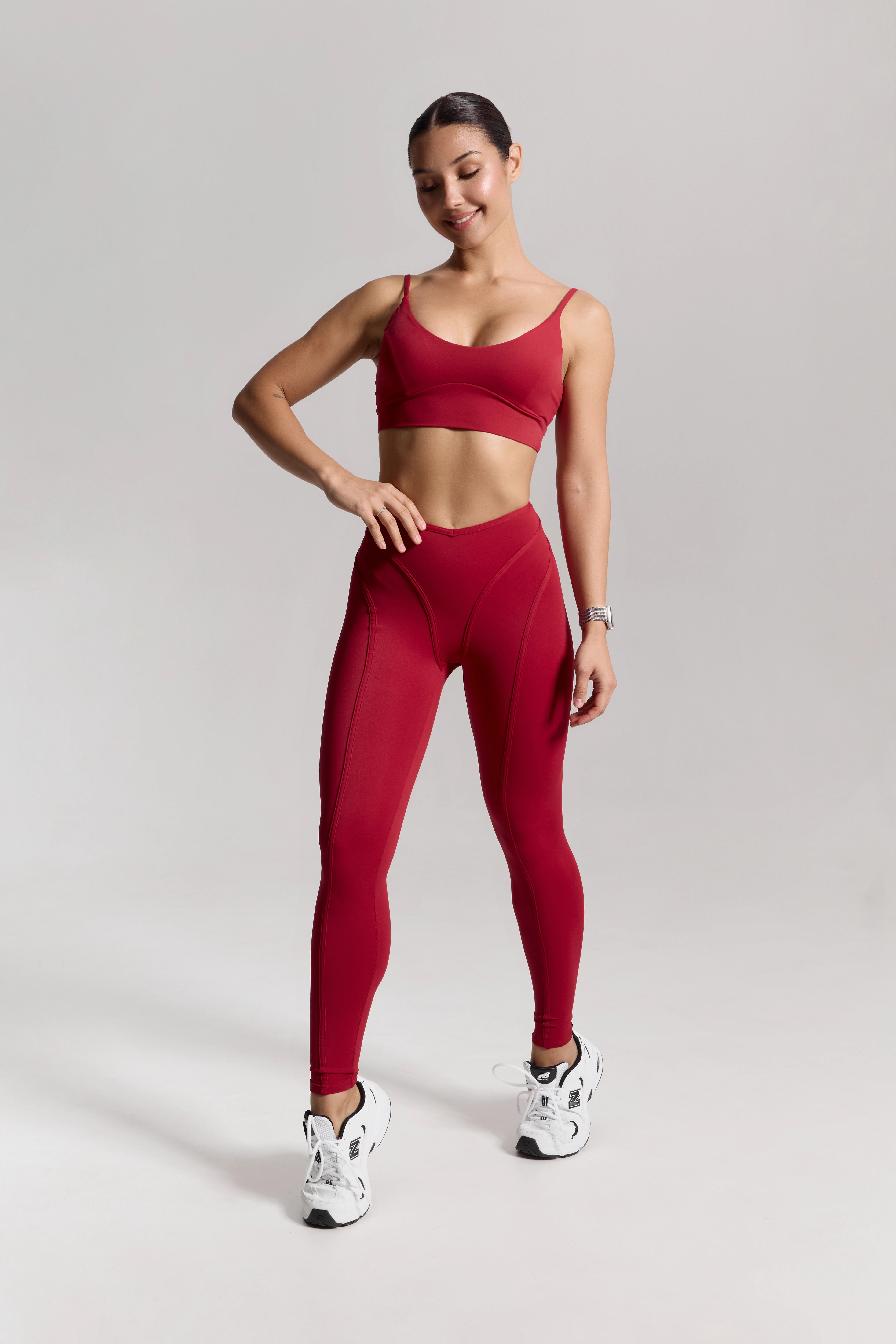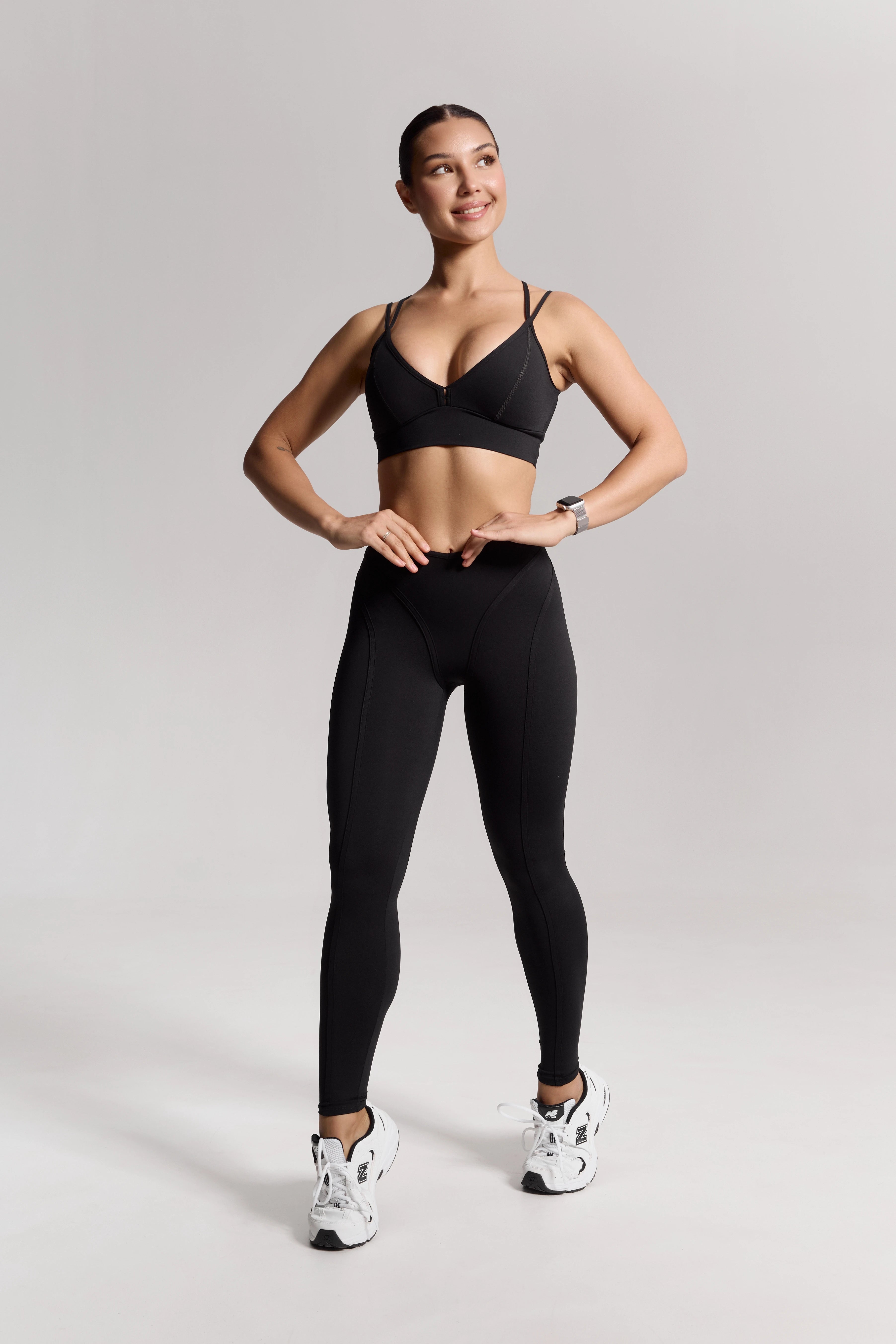 – Bright high-waisted leggings with a sculpting V-shaped waistband that defines the waist and creates an hourglass effect.