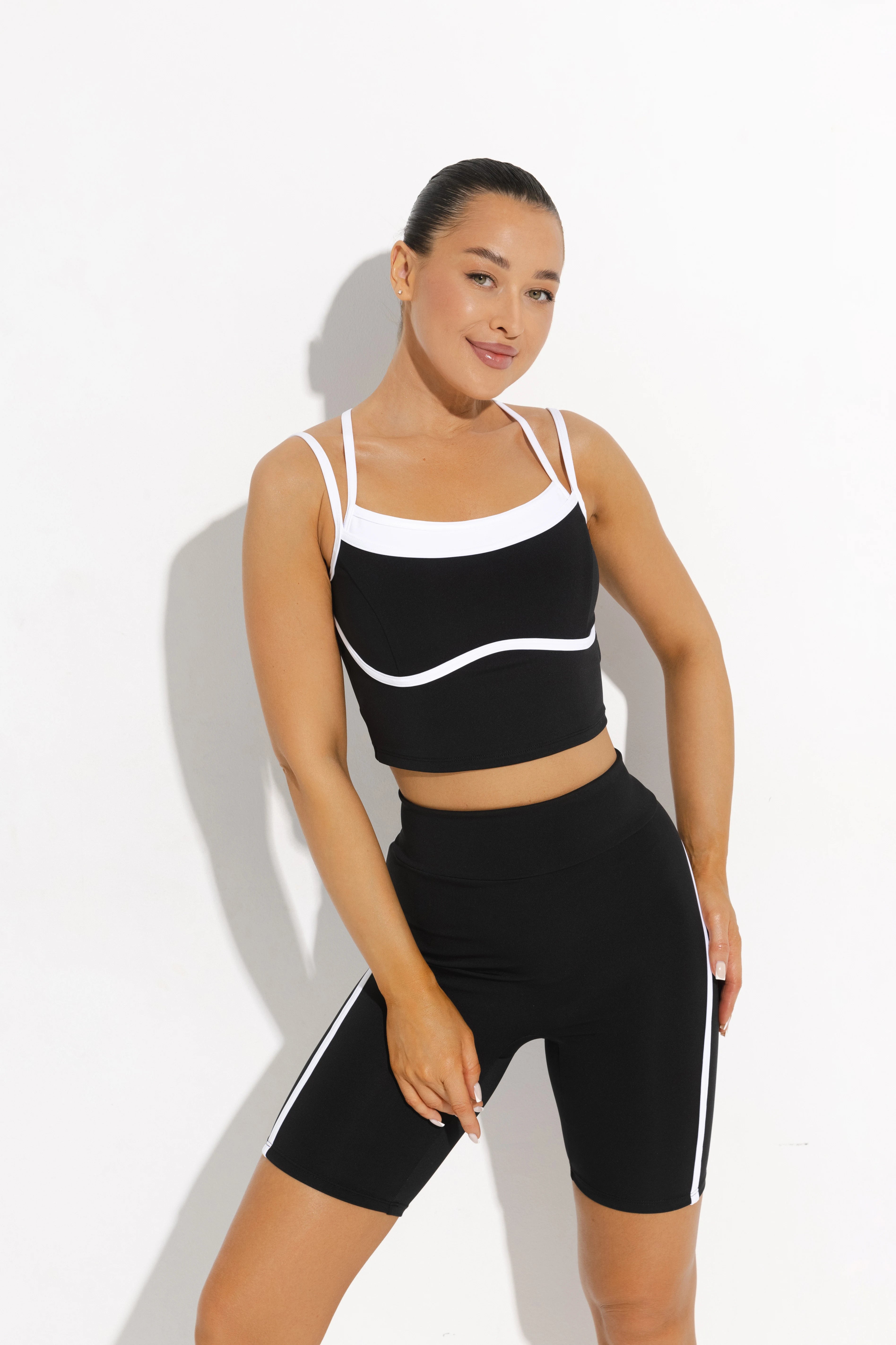 - Ultra-comfortable biker-length shorts that fit the body perfectly.